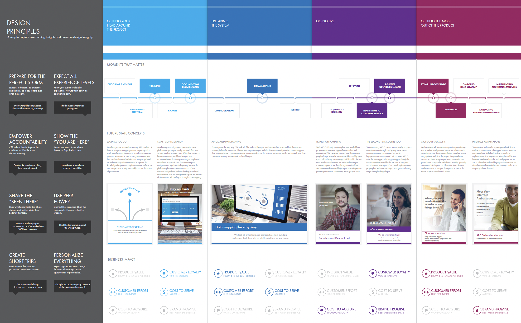 We take time in advance to marinate in any existing research, goals, data & tribal knowledge that your internal team believes to be relevant. Then, we conduct deep-dive interviews directly with your customers & SMEs - to immerse in the journey from their perspective. After a critical number of interviews are complete, we synthesize what we’ve learned into a draft journey map and key insights, which are presented as an Early Themes Readout.